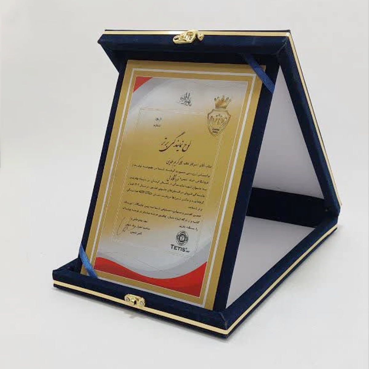 نمایندگی برتر شرکت تتیس با طراحی رسمی و جلوهای لوکس، بهمنظور تجلیل از عملکرد موفق نماینده فروش در حوزه محصولات این شرکت تولید شده است.