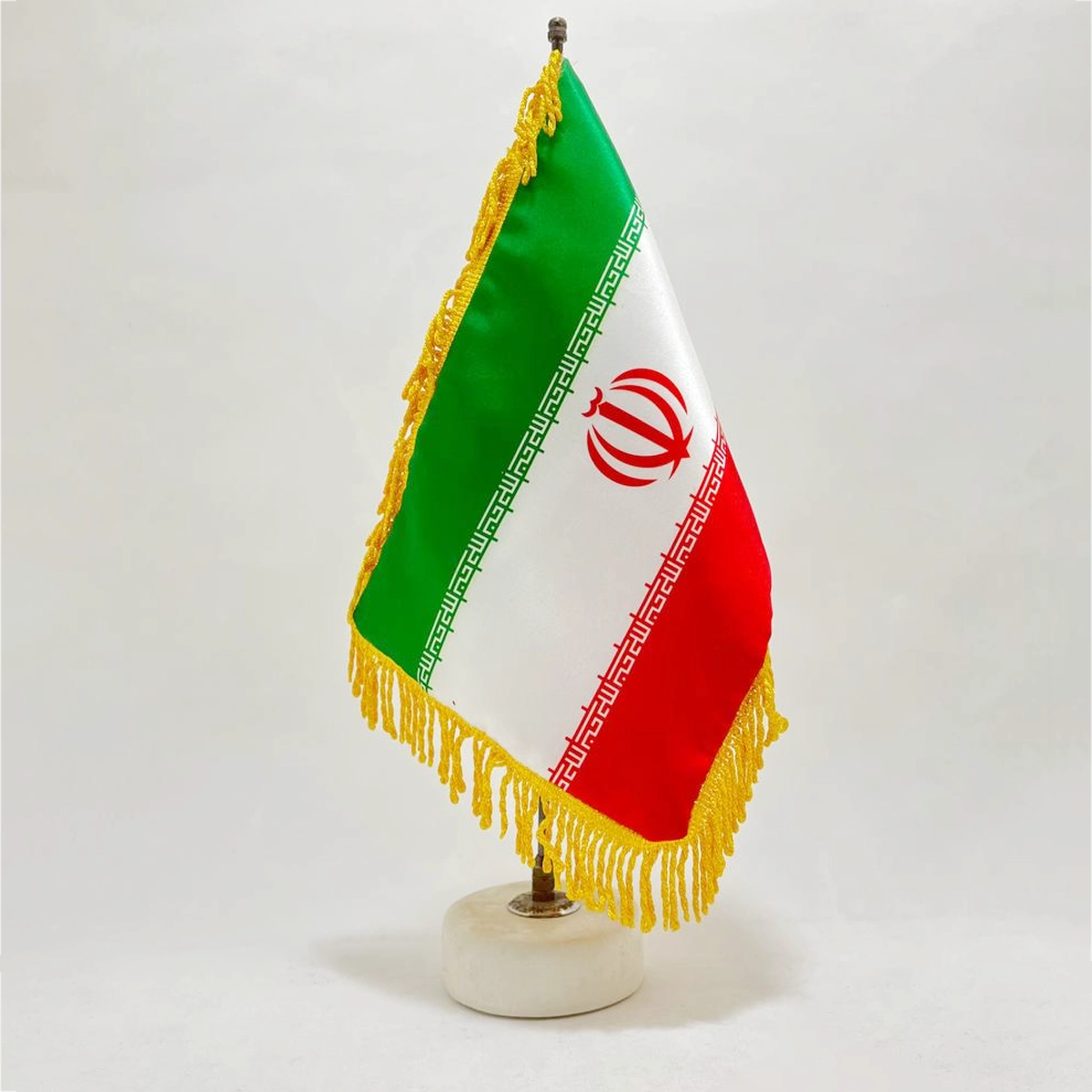 پرچم رومیزی ایران با چاپ سابلیمیشن؛این نوع پرچم ها معمولا روی پارچه ساتن براق تولید می شن که هم ایستایی خوبی داره،هم جلوه ای رسمی شیک.