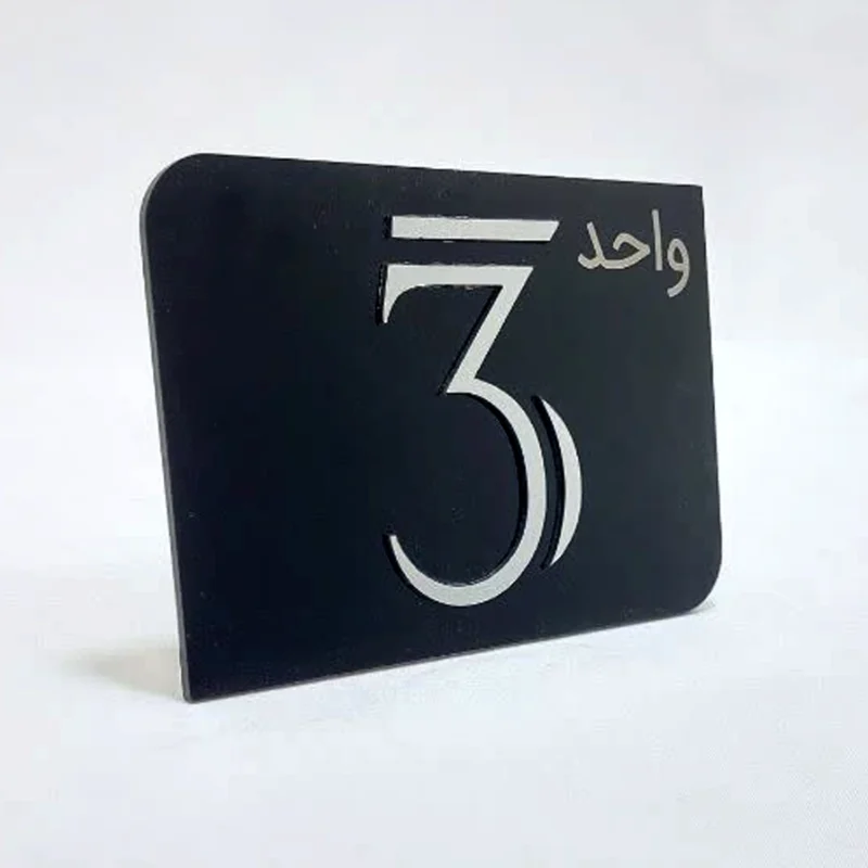 این پلاک با طراحی مدرن و اجرای دقیق، بهمنظور شمارهگذاری واحدها، اتاقها یا بخشهای سازمانی تولید شده است.